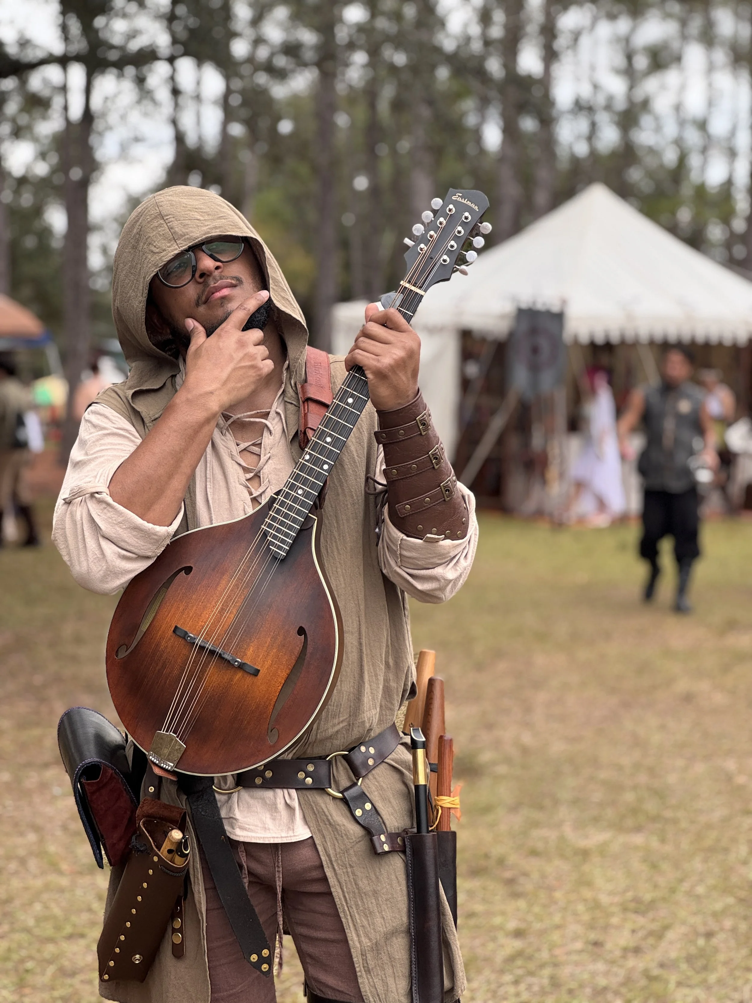 London’s craft has been honed across a diverse range of stages, from the sun-drenched lanes of major outdoor faires to the intimate, atmospheric halls of indoor conventions. He is a familiar face at premier events such as Lady of the Lakes, the Orlando Renaissance Festival, and the Bay Area Renaissance Festival, where he excels at navigating large crowds and keeping the festival energy alive between stages. His versatility also shines in curated indoor settings like Enchanted Knights and the Magyk and Mythk Festival, where he leans into his storytelling and soft flute melodies to create a truly magical, focused experience. No matter the venue—be it a sprawling forest or a candlelit hall—London adapts his performance to perfectly suit the spirit of the realm.